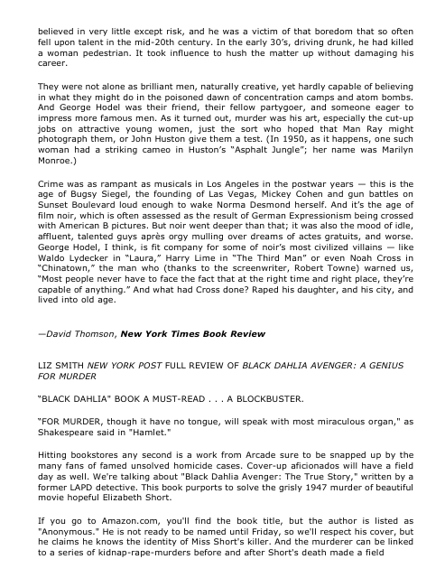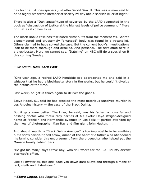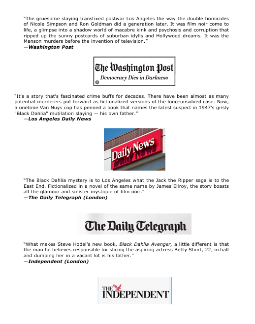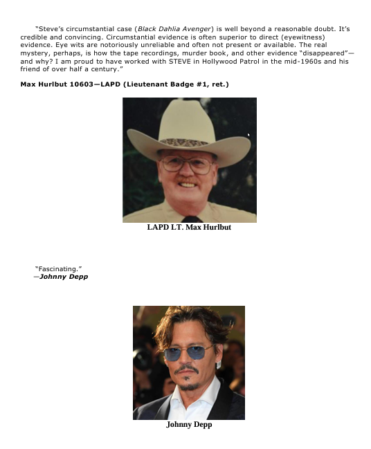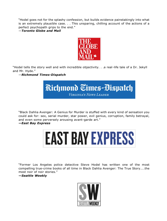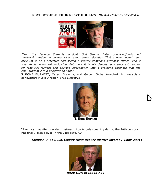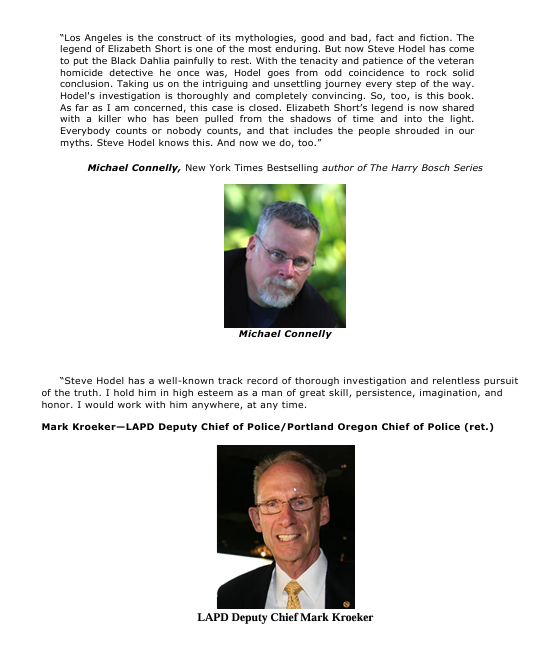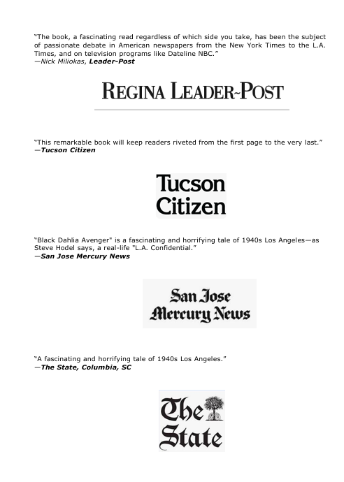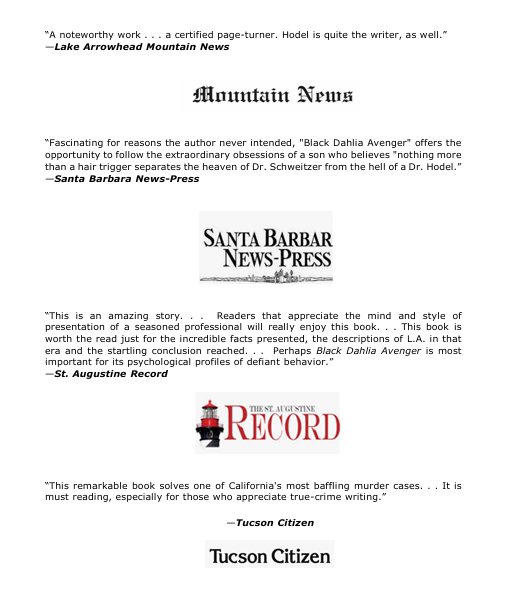 A heartfelt Thank You to all my readers and to those of you who have taken time to provide written book reviews of “Black Dahlia Avenger” through the years. This includes the dozen or more readers who have sent me their many insights and discoveries of “clues” and linkage that have added much toย “make the case” as real evidence.
