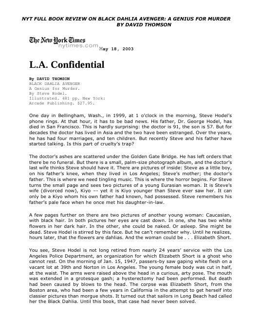 2) Why do you think your Dad chose Elizabeth Short as a victim?