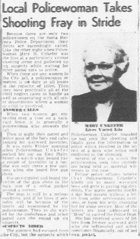 Santa Barbara Police Officer Mary Unkefer Heroine–Her QuicK Actions Saves Victim’s Life in Shootout Several Years Before Her 1949 Linking of Dr. George Hodel to Assault/Att. Overdose of Victim Lillian Lenorak and Black Dahlia Investigation
