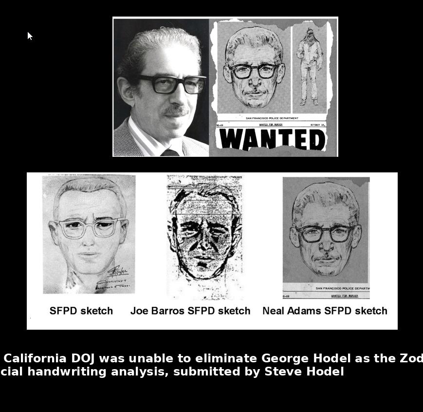 In 2010, a California Department of Justice handwriting expert compared known handwriting samples from George Hodel with verified Zodiac letters. While unable to reach a court-level identification, the examiner concluded: “We are unable to eliminate George Hodel as the writer of the Zodiac letters.” At that time, DOJ requested additional lower-case handwriting samples, which remain unavailable.